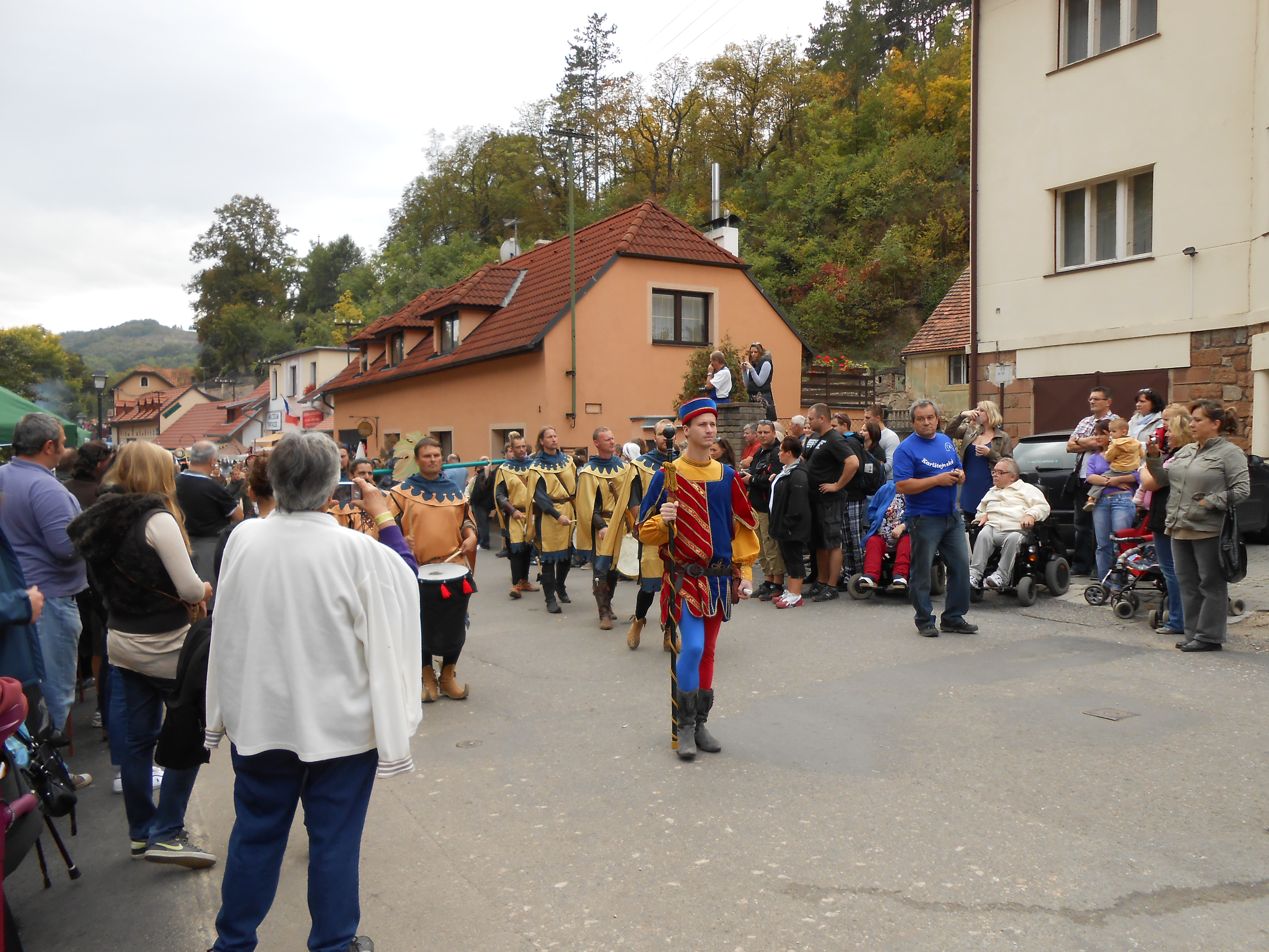 Každoročně v září se pořádá Karlštejnské vinobraní. Již několik let se tohoto svátku účastní skupina vozíčkářů s doprovodem. Těšila jsem se na tento den, i když jsem jela po páté. Před jedenáctou hodinou nás zastihla téměř kilometrová fronta na parkoviště. Cesta na parkoviště byla doslova s přískoky. Přivítalo nás sluníčko a neskutečné množství lidí. Celá skupina se vydala po cestě k hradu mezi spoustu stánků s burčákem, koláči, jitrnicemi, drobnými upomínkovými předměty. Asi díky burčáku již od parkoviště naše skupina potkávala lidi s kelímky tohoto sladkého, náladu jistě povzbuzujícího moku.